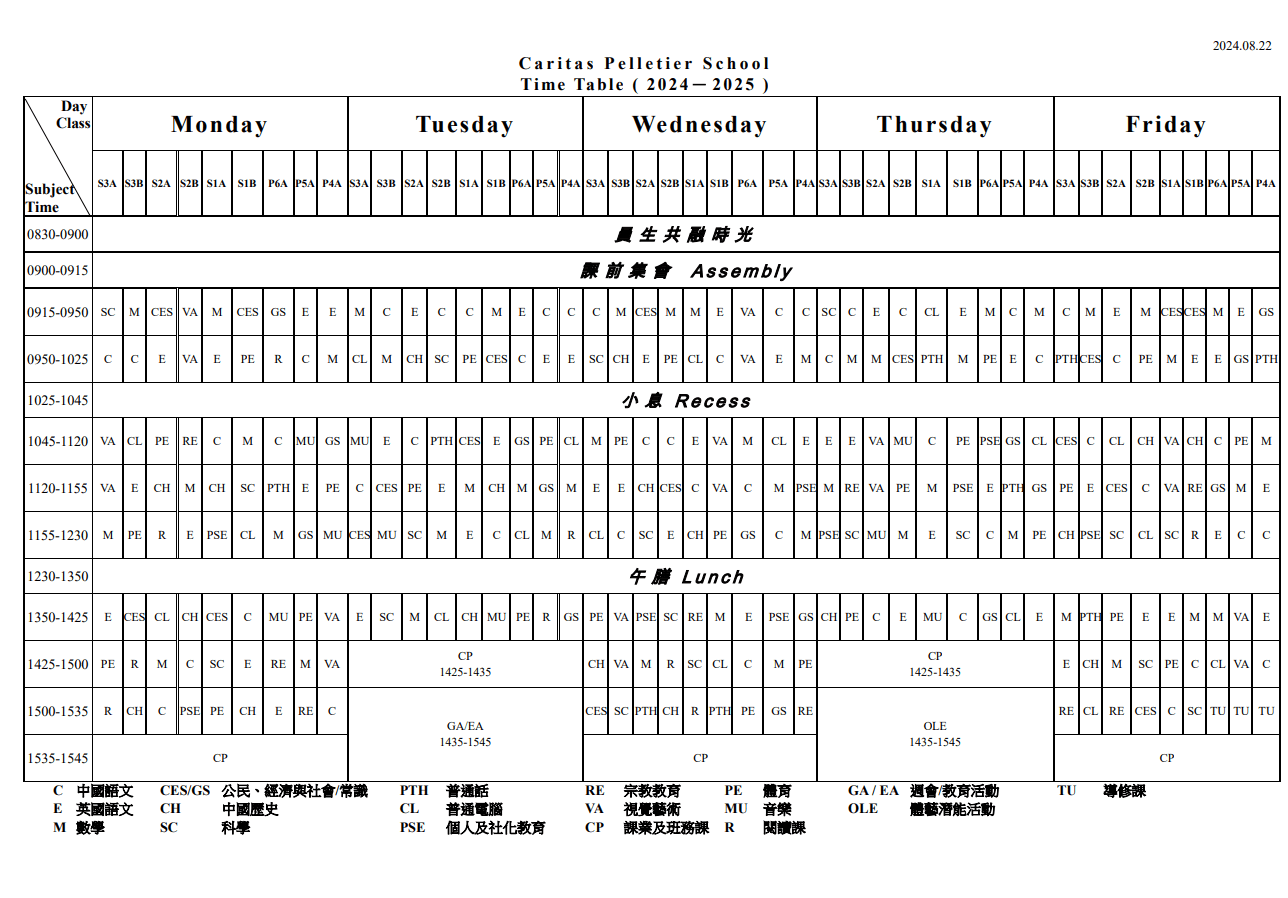 上課時間表